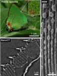 In a cooperation with two leading experts in butterfly research, Dr. Bodo Wilts from University of Fribourg/Switzerland and Dr. Gerd Schröder-Turk from Murdoch University in Perth/Australia, as well as with Dr. Stephen Kelly from Zeiss-Xradia the material scientists from Erlangen employed different high-resolution microscopy techniques to reveal the formation mechanism of these photonic crystal structures. The green butterfly Thecla opisena, which has its habitat in the Neotropics from Mexico to Venezuela, features separated photonic crystal domains which increase in size from the base to the tip of the wing scales. This is a so-far unique characteristic, distinct to other butterflies. The scientists interpret this finding in such a way that the photonic crystal growth got “time-frozen” at different stages of the metamorphosis. Hence, detailed microscopic analyses can be employed to obtain important insights into the formation processes of these crystals.