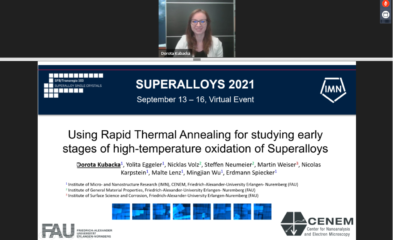 Dorota Kubacka received a prestigious opportunity to deliver an extended oral presentation (30 min) during the Superalloy 2021 conference, the summit once every four years in the field of superalloys community. Her talk, “using rapid thermal annealing for studying early stages of high-temperature oxidation of superalloys”, was one of the three selected live talk in the session “Environmental behavior”. Despite as live online presentation took place 23:00 German time, it has triggered a high attention and sparkled quite some interesting discussions afterwards. Her presented work has been compiled in the proceeding of Superalloy 2020, and also recently published in Corrosion Science (see here for the news article).