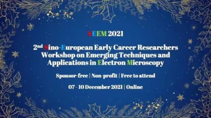 Following the success of SEEM 2020, the second event of this series, SEEM 2021, has been held on 7-10, December 2021, again concluded a great success. The workshop is sponsor-free, non-for-profit and free to attend. Beside the 3 original organizers, Dr. Zezhong Zhang (University of Antwerp, BE) joined the organizers’ team this year. This annual workshop sets up a regular bilateral forum for electron microscopists based in China and Europe, especially early career researchers and young PIs.