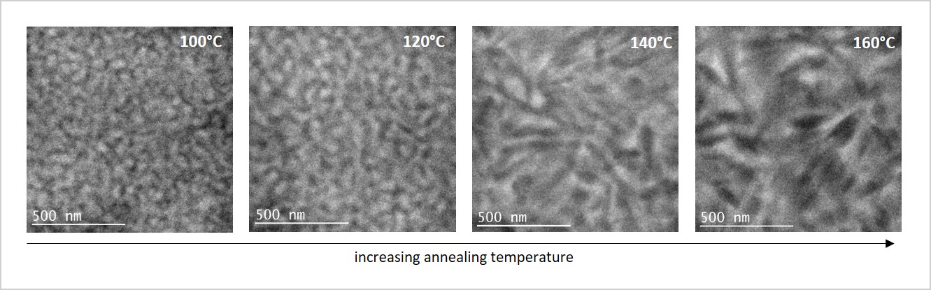 5/5The power conversion efficiency of solution-processed bulk heterojunction (BHJ) solar cells has seen a dramatic increase in the last decades due to the introduction of new donor and acceptor materials and development of novel processing conditions. While the new donor/acceptor materials provide inherent better exciton generation and mobility, the processing route and parameters control, very sensitively, the crystal orientations, interfaces and nanoscale phase distribution (nanomorphology), which dictate the charge separation and transport, and ultimately the efficiency of devices. To develop predictive design of new processing routes, a microscopic understanding of processing-structure-property relationships is on high demand. Such understanding start with a reliable observation of crystallinity, texture, interfaces and morphology of the BHJ layers.