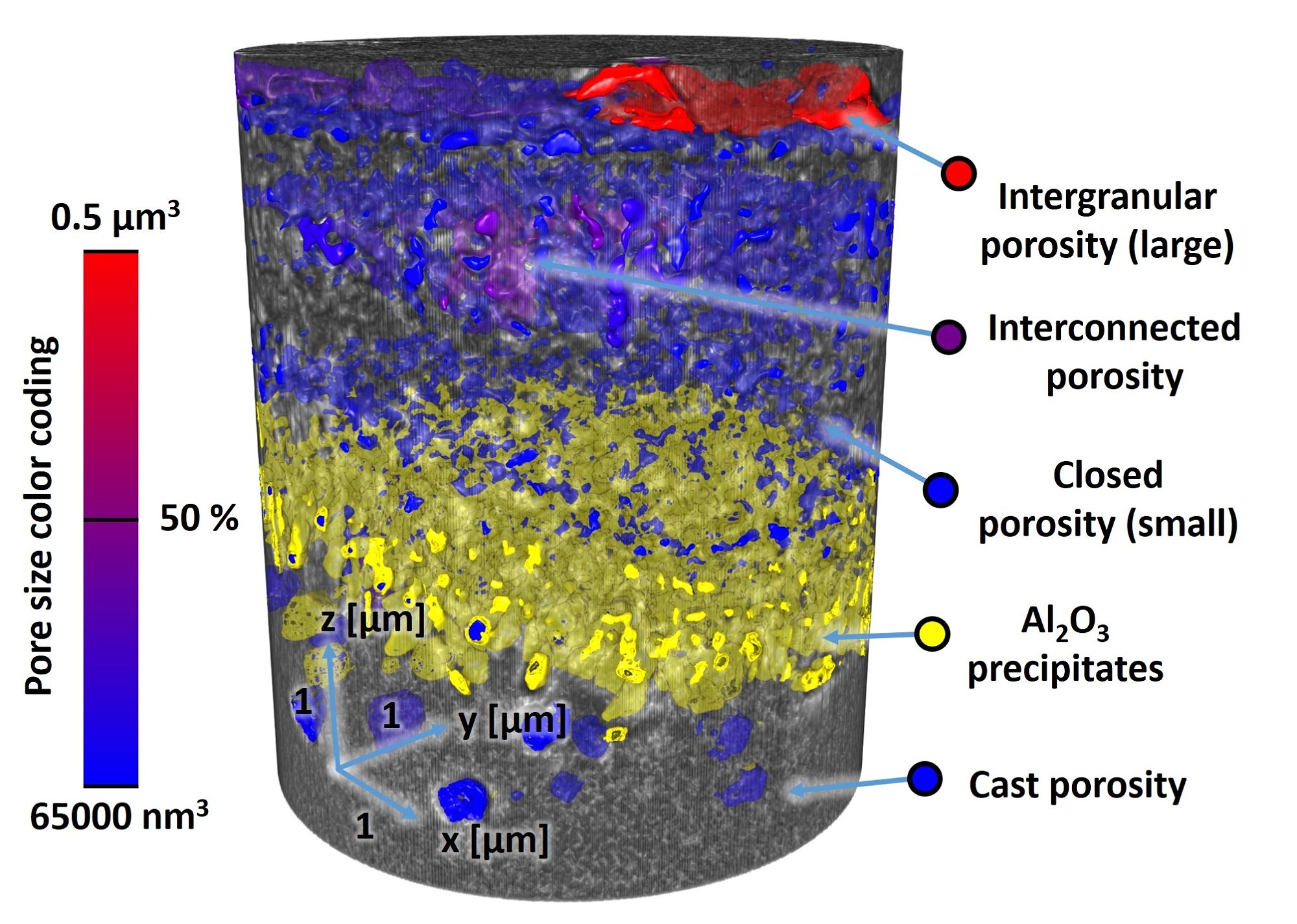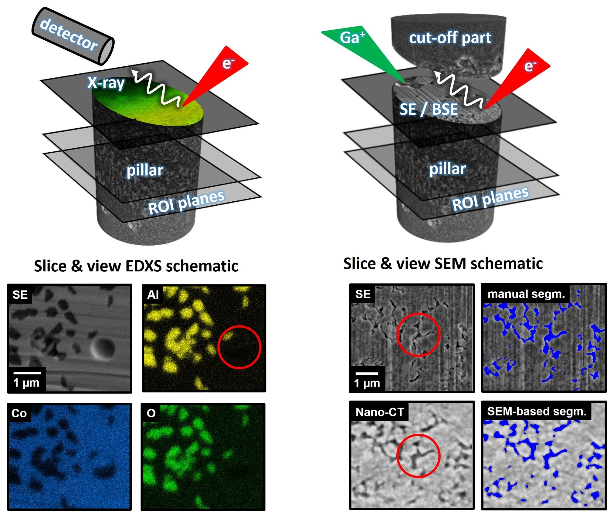 A further focus of our research in the field lies on the 3D characterization of oxide layers of Co- and Ni-based superalloys with FIB-tomography and X-ray tomography to understand the mechanisms behind the formation of phases and pore structures in oxide scales and the degradation of surfaces in general.